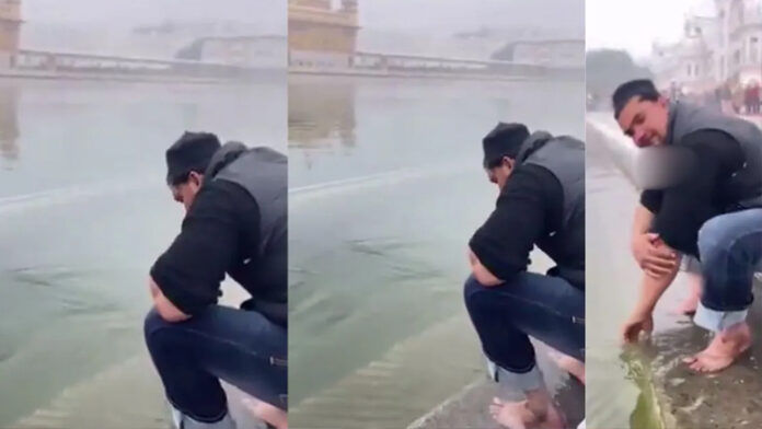 अमृतसर। पंजाब (Punjab) के अमृतसर (Amritsar) स्थित स्वर्ण मंदिर (Golden Temple) से एक चौंकाने वाला मामला सामने आया है। यहां के पवित्र सरोवर में एक मुस्लिम युवक (Muslim Youth) ने हाथ धोए हैं और कुल्ला किया है। इससे जुड़ा वीडियो भी सोशल मीडिया पर वायरल हो रहा है। गौरतलब है कि इस पवित्र सरोवर में सिख श्रद्धालु (Sikh Devotees) स्नान करते हैं। इस मामले के सामने आने के बाद SGPC ने इस घटना पर ऐतराज जताया है।